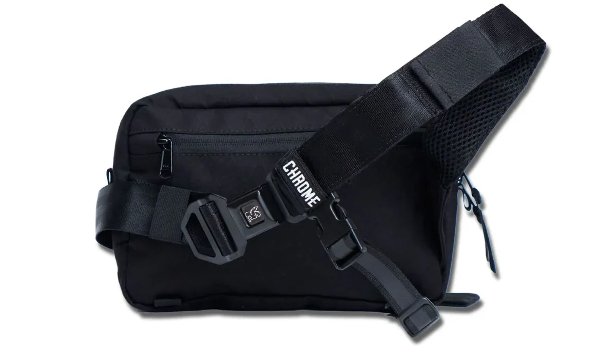 Barrage Slings (5L £80 / 2L £45) – Compact crossbodies for daily essentials, featuring hidden stash pockets and Chrome’s signature buckles.